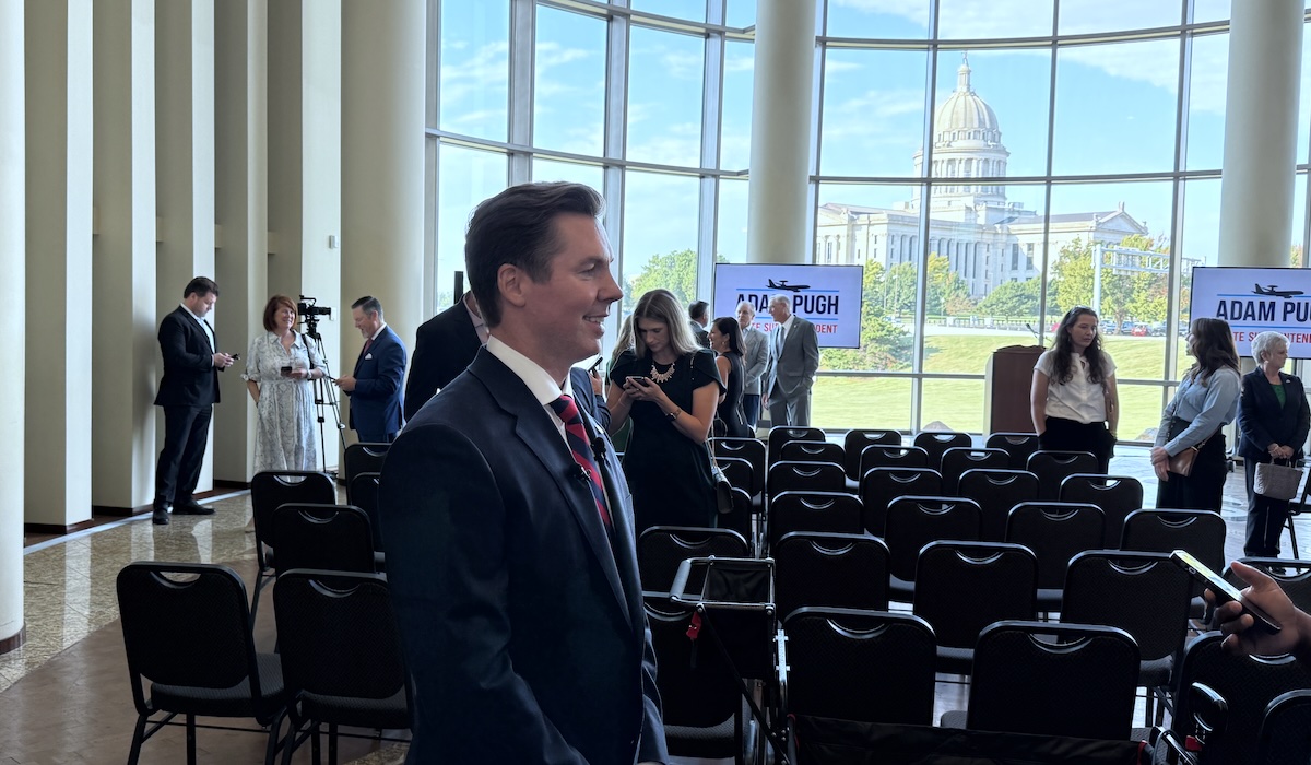 Days later, at an Oct. 2 gathering at the Oklahoma History Center, Sen. Adam Pugh joined the race, bringing the total number of declared Republican candidates back to three following Ana Davine Landsaw’s withdrawal, which she announced in a Sept. 12 Facebook post.