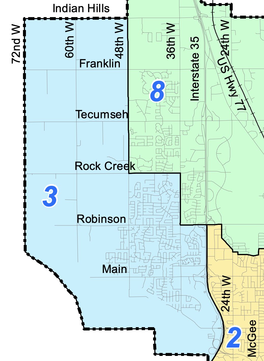 Ward 3 covers westernmost Norman, running east from 72nd Avenue Northwest.